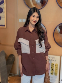 Kemeja oversized wanita dengan model yang modis, Bahan yang nyaman, adem dan tidak mudah kusut akan siap menemani hari-hari Sorai!