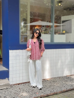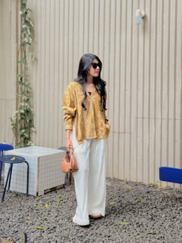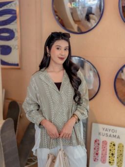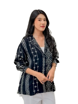 Tampil anggun dan stylish dengan blouse motif ethnic modern yang memadukan bahan katun bordir dan plisket. Nyaman dipakai, cocok untuk acara formal maupun santai.